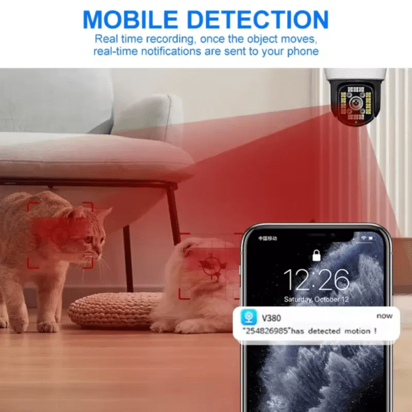 6. Sound and motion detection, when someone breaks into the shooting area, the action detects and sends a push notification on your phone.